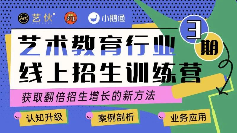 现在,我们结合小鹅通许多优秀的艺术教育行业客户案例,还有多名头部IP访谈调研,特别定制了「艺术教育行业线上招生训练营」。