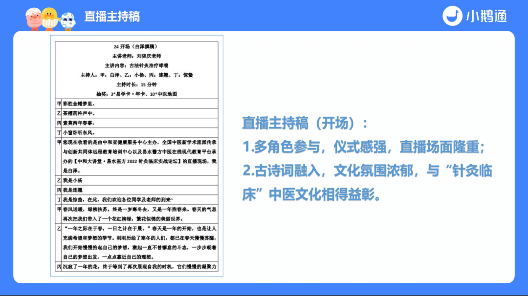 1)每次直播,邀请6-10名中医名师讲解不同专题。保证满足各种需求的粉丝学员